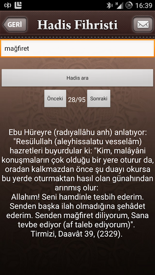 * Hadislerin konu başlıkları altında indexlenmiş hali ve bunlar arasında arama yapabilme.