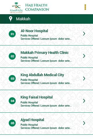 - Find and navigate to the nearest healthcare care facility in Makkah, Madinah and the Holy sites (Mashaer)