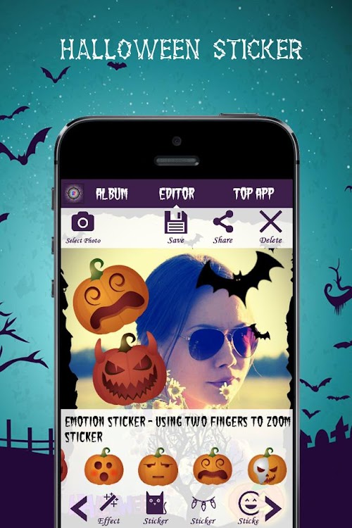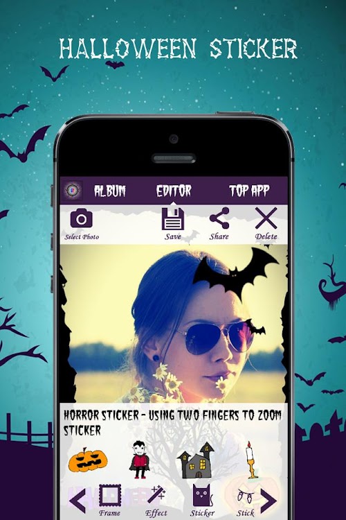 Halloween photo editor app is a gift for Halloween day. You maybe want to try something interesting like a scare photo and say : Trick or treat.