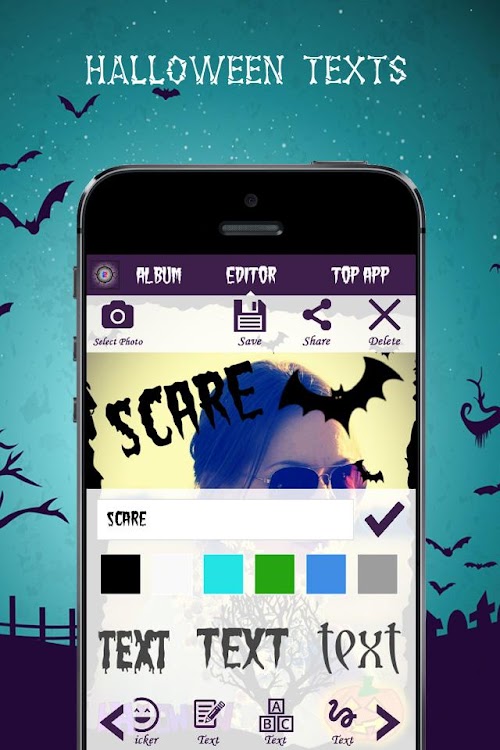 So with app is all about editor for Halloween with Haunted Frames, Ghost Sticker, Horror Texts, Effects and Dark.