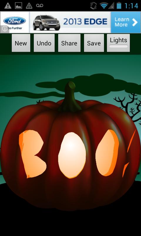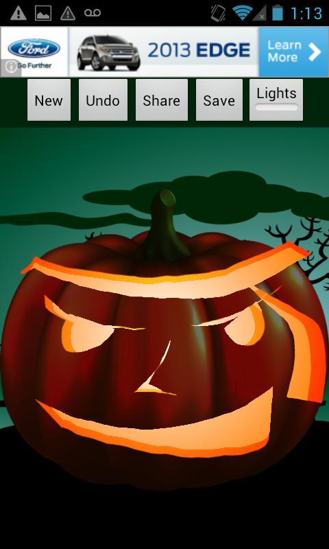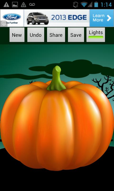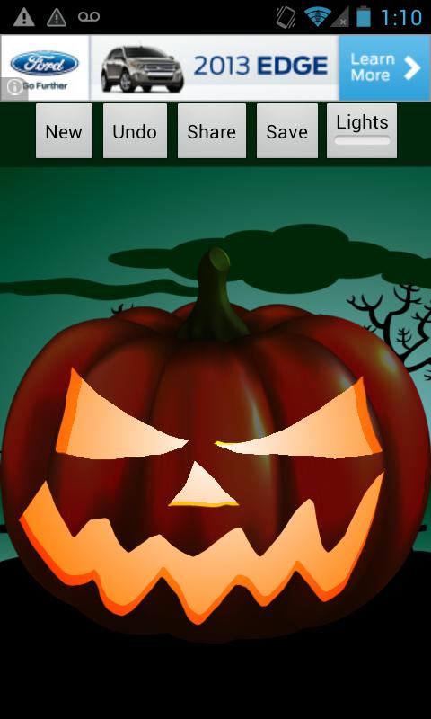 You can also use the "Lights" button to turn the lights on or off and get a better view of your pumpkin. Be sure to share your pumpkin with your friends!