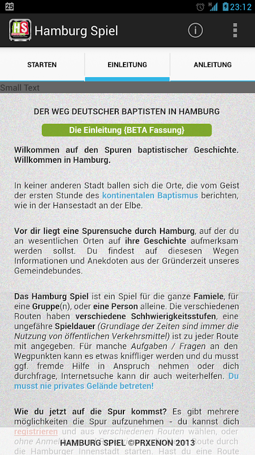 # Begleitheft zum Spiel ist über das Gemeindejugendwerk Norddeutschland erhältlich.Hamburg game, the way German Baptists in Hamburg.