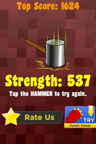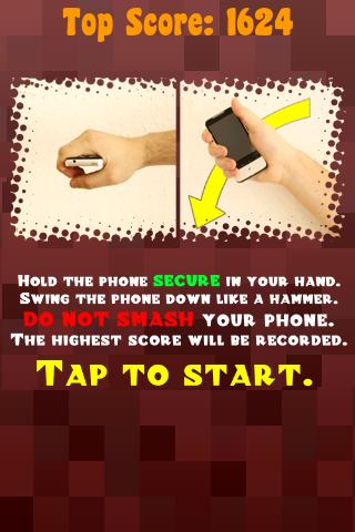 Swing your phone down like a hammer as hard as you can to measure your strength. The faster you swing the more points you will have.