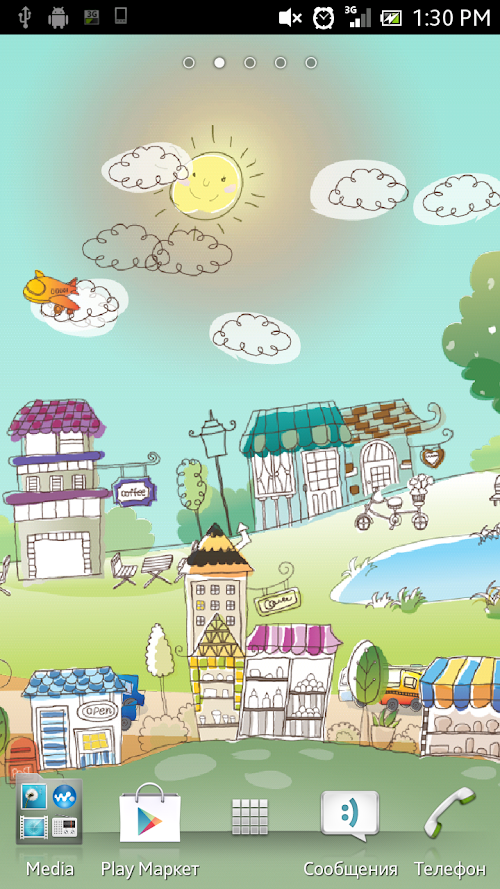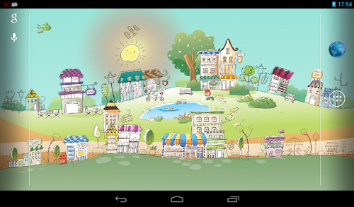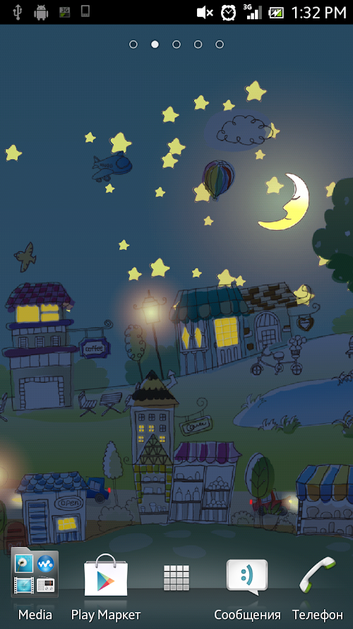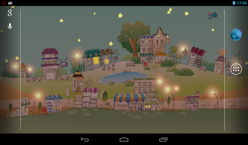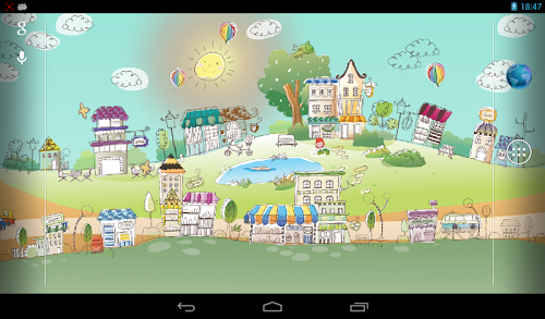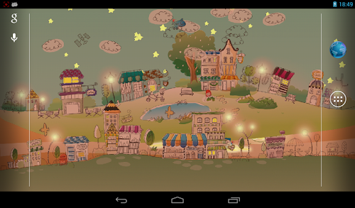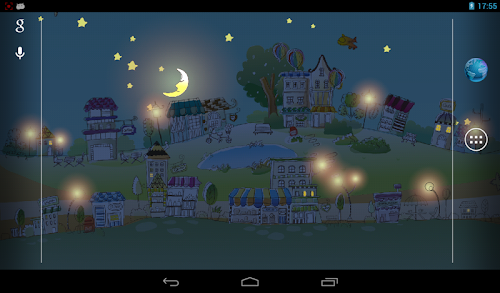 Discover our Hand-Drawn City Wallpaper! It’s creative hand-drawn outline with a beautiful houses, cozy cafes and shops, blinking street and window lights, cars, bright stars, airplanes, multicolour balloons and others. A tame crocodile lives in the lake. Sometimes cosmos sends us its regards with a cosmic satellite. The wallpaper looks like graphical outline picture filled with bright joyful colours. It will bring you a plenty of positive emotions! Realistic street agleam lights and sky change during the day and night. Amazing star sky at night.
