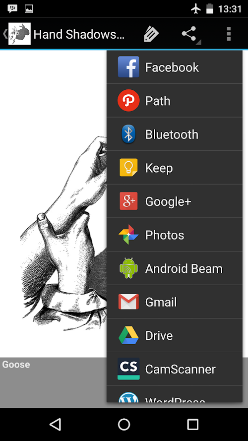 HAND SHADOWS PUPPETS is an application to show you how to make shadow puppets using your hands.