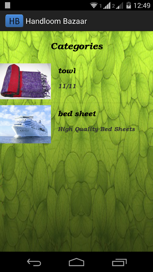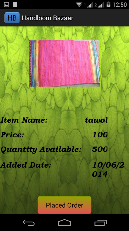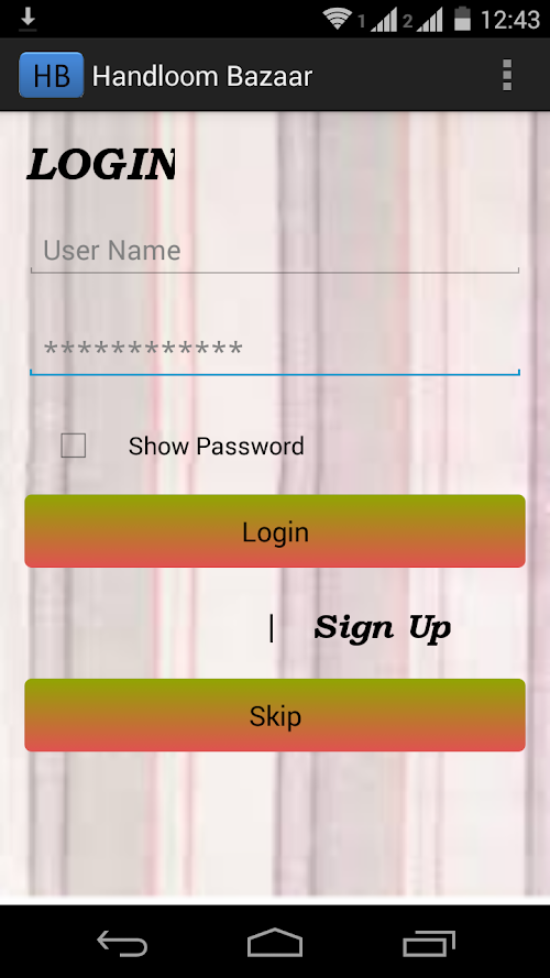 Handloom Bazaar is an App developed for Mr. Nikhil Chelwani and his customers for viewing and ordering Handloom Items directly from your Android Phone