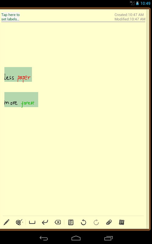 Write in the spacious "zoomed area" and watch your words appear in the body of your page. Handrite note does not try to “recognize” your handwriting. Instead, it simply captures your strokes exactly as you drew them. This avoids the tedious task of having to “train” the app to read your handwriting as well as the interpretation errors that still occur. It also means that you can sketch symbols, numbers, pictures, mathematical equations, etc in your notes.