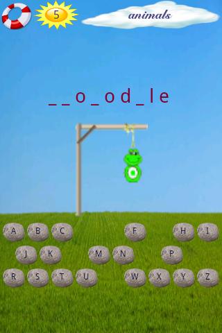The word game hangman with the frog game contains hundreds of words and a lot of subjects.