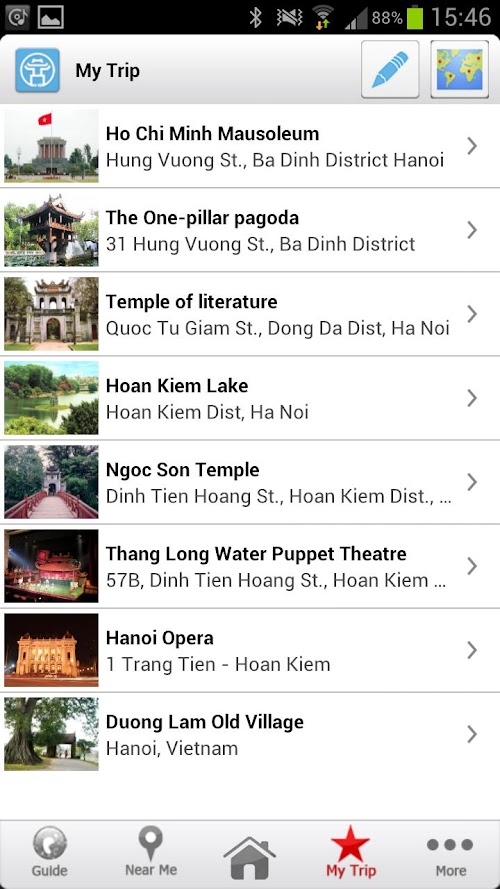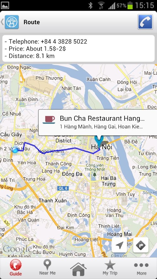 Hanoi Travel Guide Book make it easier and more convenient for travelers while they are staying in Hanoi. As the name suggested, the app functions as a city guide and provide all the information that a tourist like you may need about the city: History, weather, attractions, hotels, restaurants, shoppings, nightlifes, banks, tours and more. Each of the attraction included in the applications contain a brief description and contact information while the restaurants or hotel include a quick view of price ranges. For every place listing you can choose to see its location on a map along with distance from where you are and can view the route from your position.