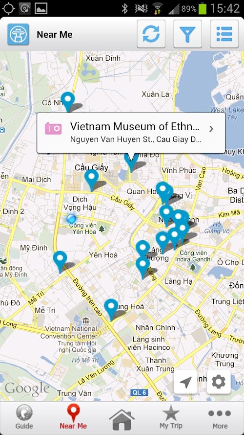 Hanoi Travel Guide book quickly identifies your position and allows you to find the nearest Attraction, Hotel, Restaurant, Shop... For each place you choose, you can view detail information and get direction on a map from where you are.
