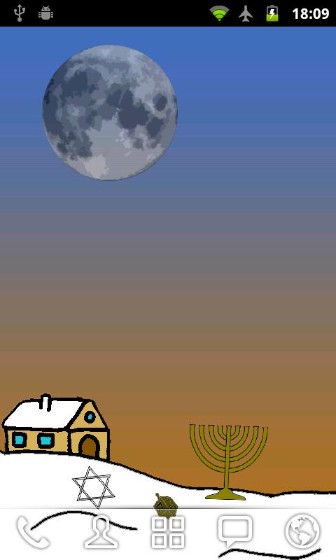 From the Home Screen, hit Menu, tap Wallpaper, tap Live Wallpapers, then select Hanukkah Sunrise Sunset Live Wallpaper