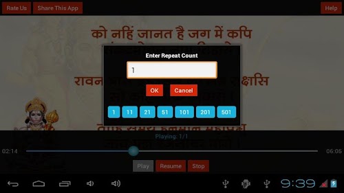 This version of Hanuman Ashtak, Repeat Option Android App comes with one universal variant which will work on all the Android devices.