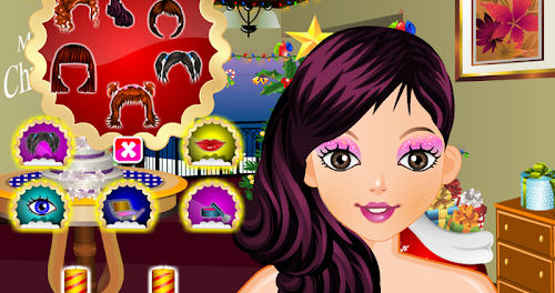This free Christmas party makeover game let you play with a big variety of hairstyles, eye-shadow, blushers, color contacts, and lipsticks. After putting your make-up kit away its time to show her you know everything when it comes to stylish outfits. This year you can choose to wear different kind of outfits. Finish it off with some sparkling jewellery, earrings and necklaces. We wish everyone a Merry Christmas.