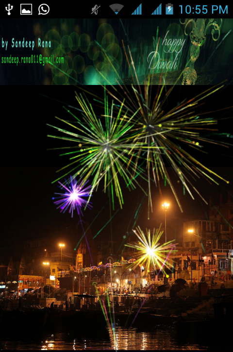 Share the app and Wish your relatives a Very Happy Diwali.This app is result of an innovative work done by the Developer to Simulate the Fireworks on the Screen with a Responsive User Interface.