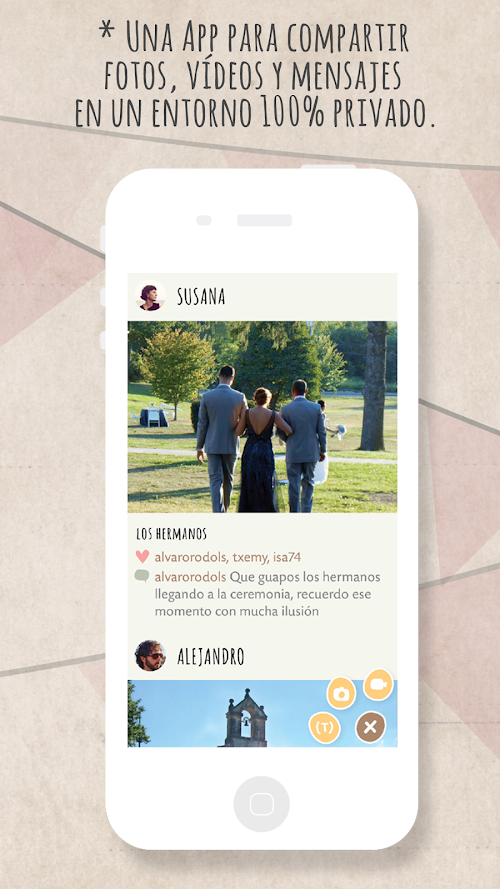 100% private wall where photos, videos and messages are shared and the most special moments of the wedding are collected. Guests (and grooms) can publish all kinds of content related to the event, before, during and after it ends. How well fits the wedding dress!