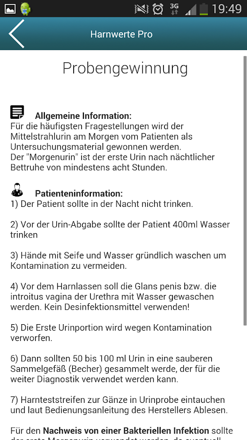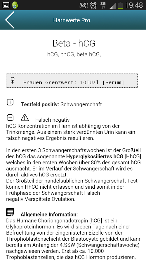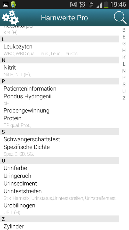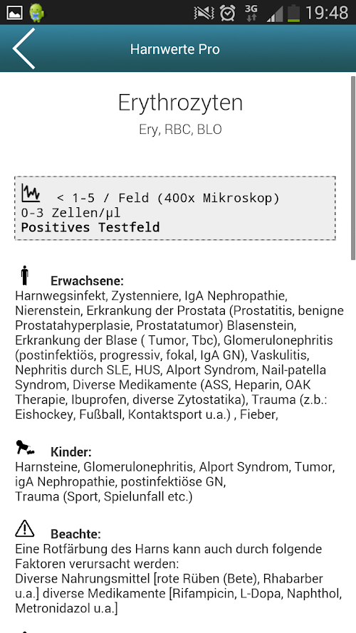 Harnwerte Pro are both medical and non-medical professionals with generally comprehensible, quickly navigable and clearly structured overview of the main routine laboratory parameters and possible causes on the increase. The laboratory values are arranged alphabetically and quickly located in the menu.