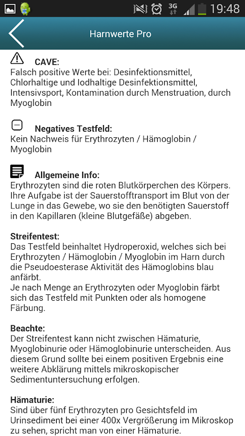 Mit Harnwerte Pro können Sie sich schnell und einfach über die Werte eines Harnteststreifens sowie über diverse Differential Diagnosen, Falsch-Positive Ergebnisse, Falsch-Negative Ergebnisse, Patienteninformation über die korrekte Anwendung sowie über pathologische Urinfarbe und Uringeruch informieren.