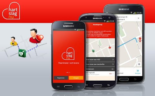 The Foundation for Heartbeat Netherlands is a partnership of regional ambulance services for the promotion and facilitation of assistance to civilian victims of sudden cardiac arrest (cardiac arrest). The alarm system that is used for this is called HartslagNu and the sector's Ambulance itself. With this system, civilian aid workers from the Emergency Ambulance be alarmed if a cardiac arrest in their environment a notification. Important profit of this app. is that you can only be alarmed if you actually within 6 minutes could be the victim. It takes into account the local infrastructure such as roads, railways and waterways. This decreases the effectiveness of the civilian assistance will increase further. Through GSM and GPS signals, the location of the civilian aid worker is determined.