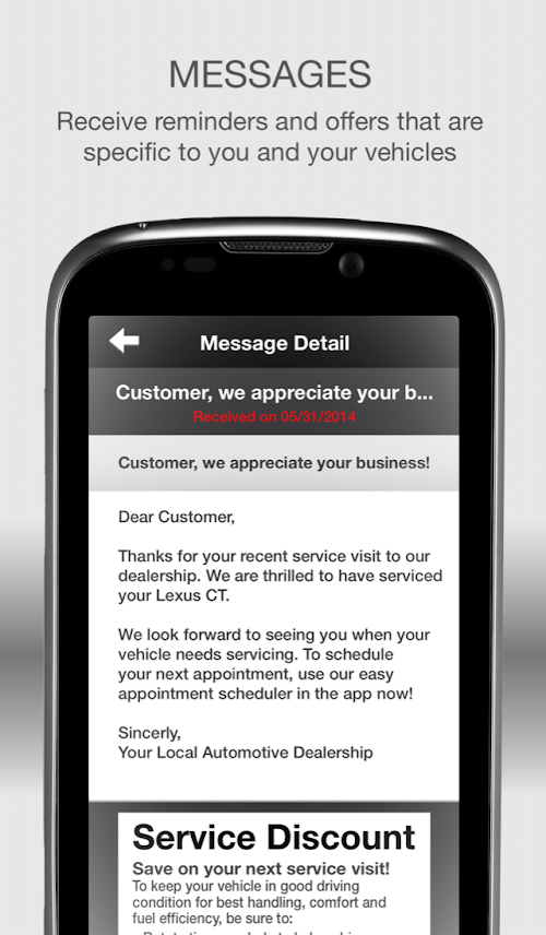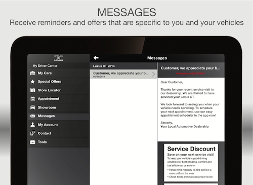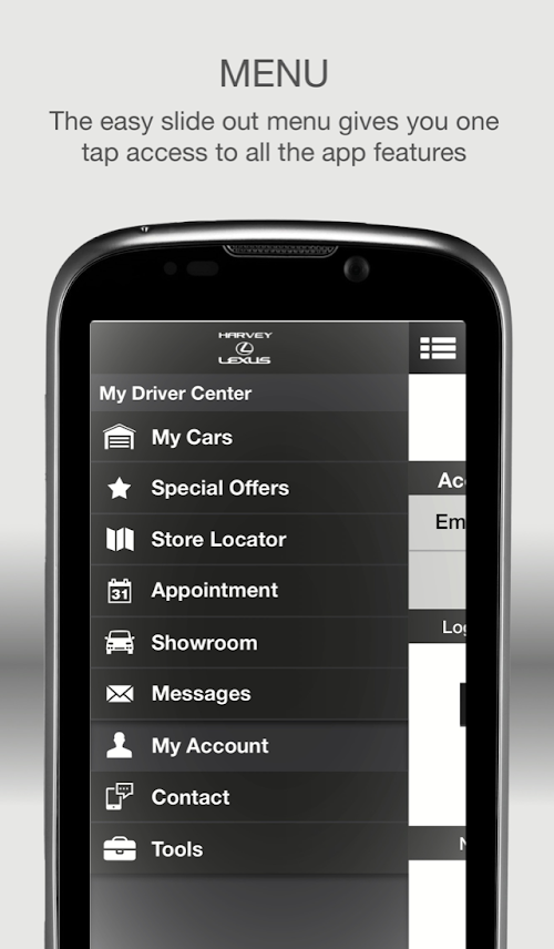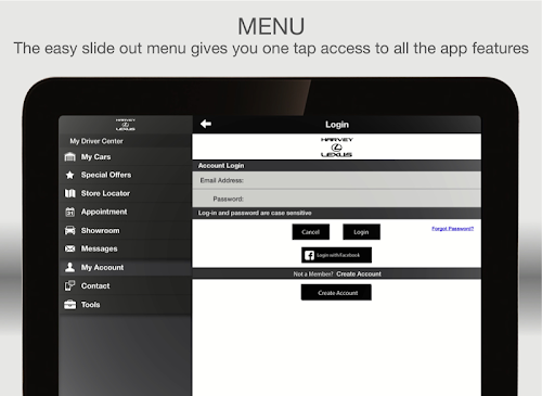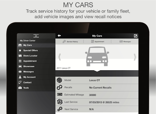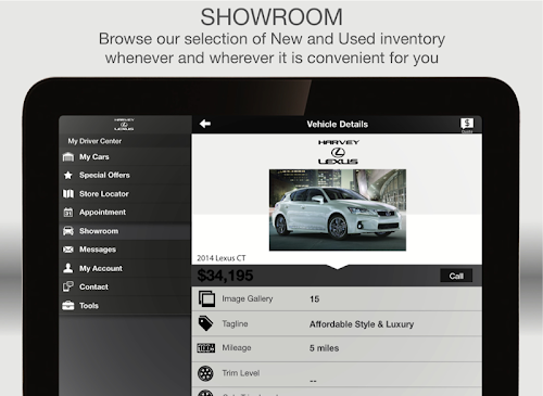 Make your vehicle ownership experience easy with the free Harvey Lexus mobile app. This feature-rich app allows you to get the most out of your vehicle by helping you to maintain and organize essential car details like service history, as well as save money with mobile offers and coupons!