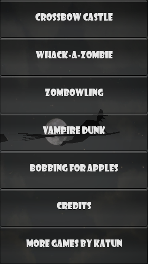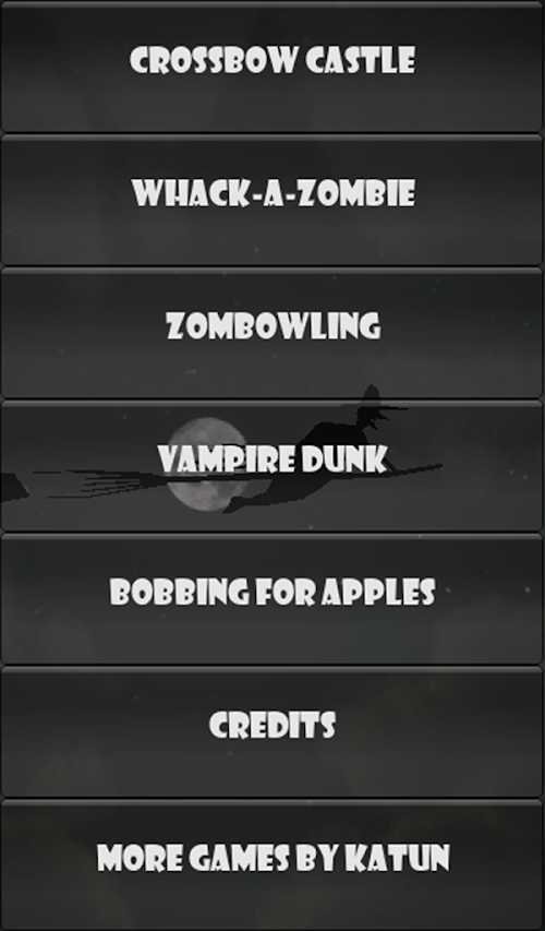 Welcome to Haunted Isle carnival games, on this isle no one can hear you scream. Dunk vampires in holy water. Shoot zombies with your trusty crossbow, but be careful you don't accidentally shoot those who couldn't make it off the island. Whack zombies before they rise from their graves starving for your flesh. Bowl captured zombies but be careful of the loose cannons. If you’re starving and need to revamp you can always bob for apples? Happy Halloween courtesy of Katun Studios!!!