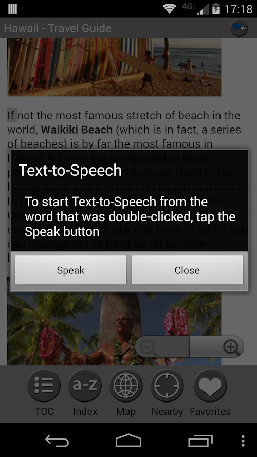 MobileReference Travel Guides provide detailed, practical information about attractions, landmarks, transportation, cultural venues, dining, lodging, history and much more. They are indexed alphabetically and by category, making it easier to access individual articles. Attractions can be viewed on an offline GPS map along with your current location so that you can easily find attractions near you as you explore the city.