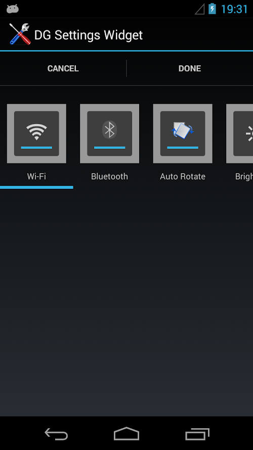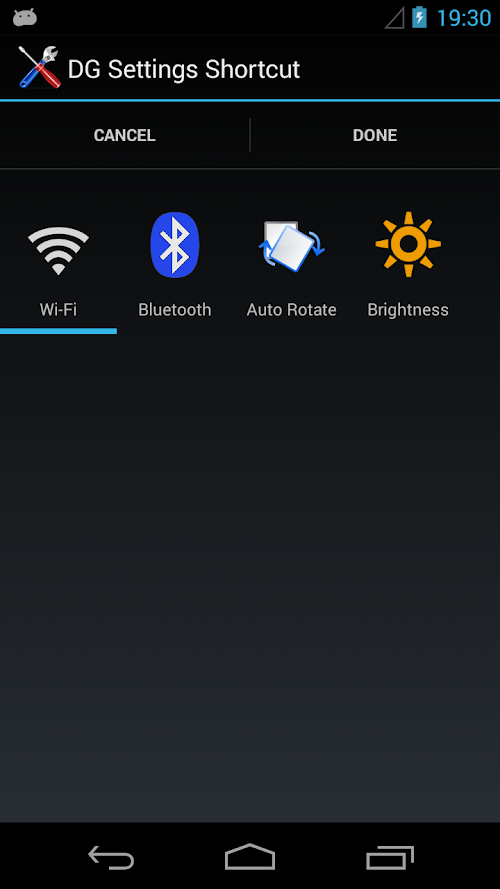 • Display Brightness with customizable levels (requires Jelly Bean 4.2 or higher)