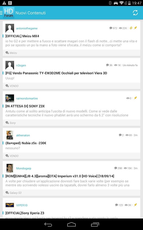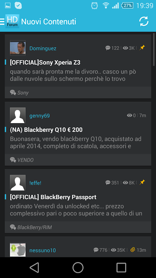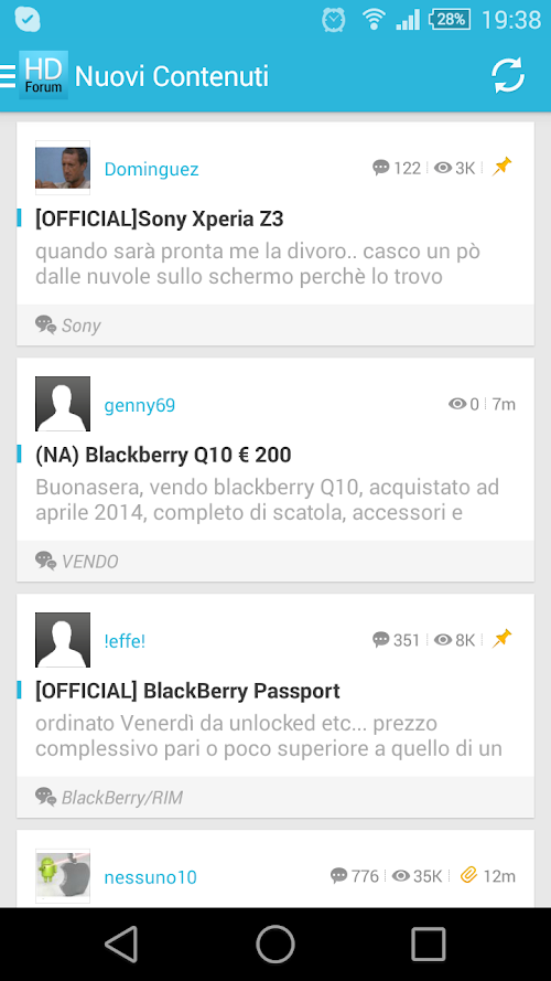 Many sections to follow all the main brands in the industry, new arrivals and ask questions or find tips on your terminal. Doubts, suggestions, or simply buying a second-hand device? In the new Forum HDblog'll find all this and much more thanks to the application and dedicated you can follow all your friends and the products you love wherever you are with push notifications and selectable themes.