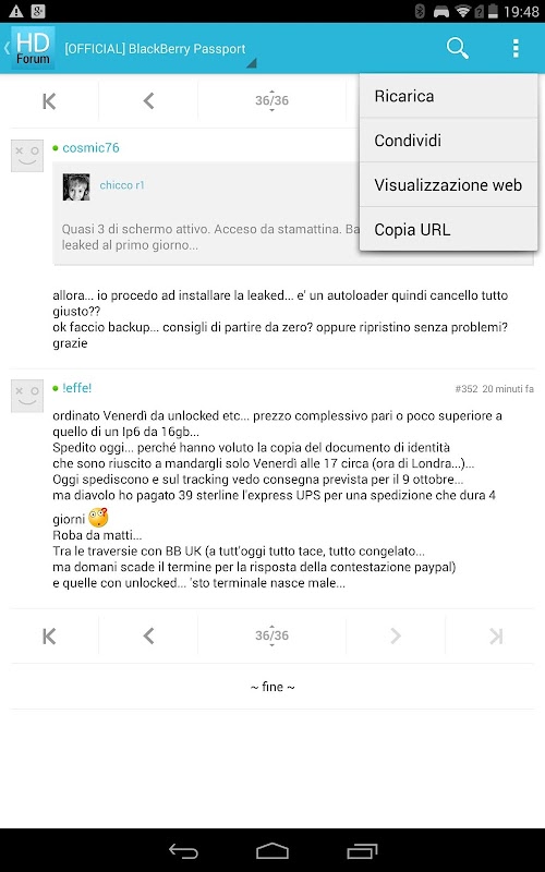 - accesso rapido alle ultime discussioni o a tutti gli argomenti