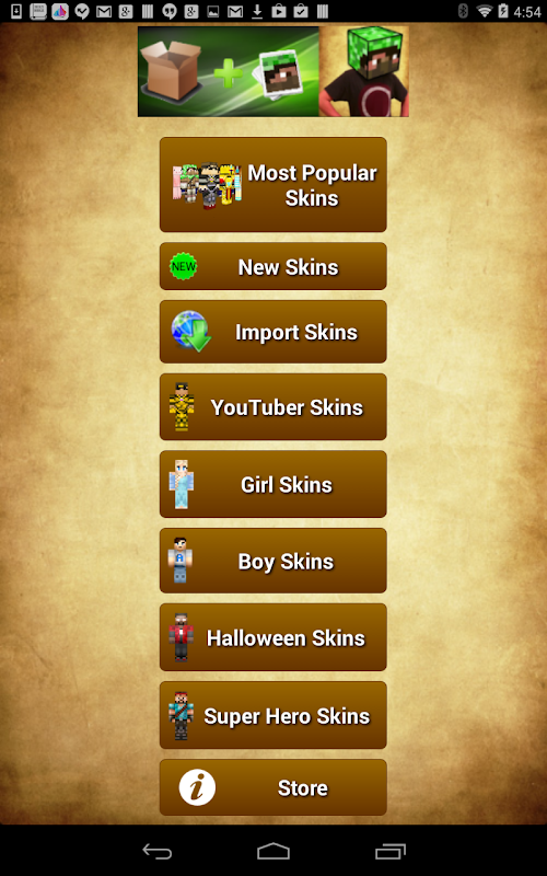+Dynamic skin lists YouTubers, Popular, New, Boys, Girls, Halloween, Super Hero skins