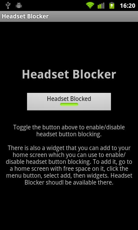Tired of your phone randomly skipping songs because it thinks your headphones are controlling the music? This simple widget allows you to block and intercept unwanted headphone control signals which seem to accidentally occur from time to time.