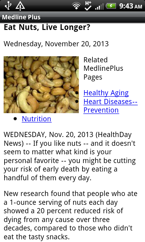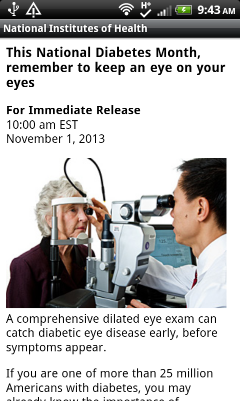 Want to keep up with the latest developments in health care and medicine? Health Now delivers the latest health findings and research results from the National Institutes of Health straight to your mobile device. Find the latest information on disease, drugs, diet, nutrition and other health topics all in one app.