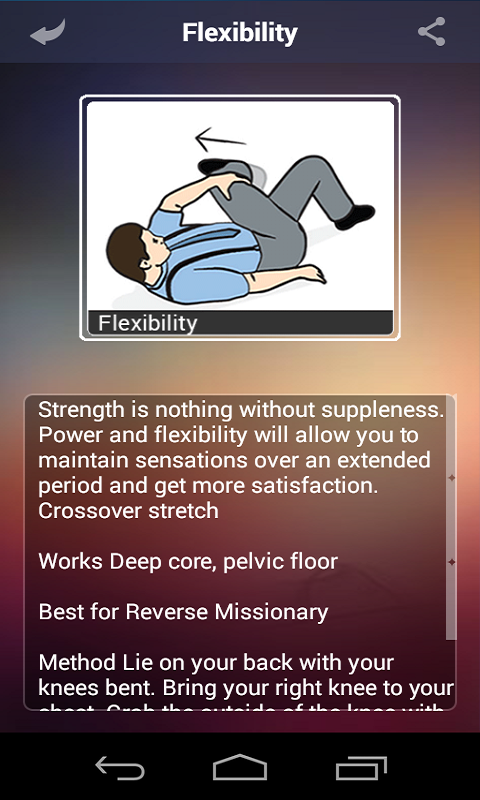 This app also contain a lot of exercises that will help to improve sex stamina and makes you fit.