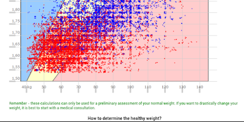 The second table is much more interesting. In it are not BMI values, and right amount of missing or extra pounds, that you have to collect. You can even print it out and hang it on the wall - everyone can look at it and then decide what and how much is wrong with his weight.