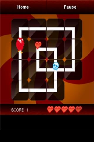 Connect the rails to collect the hearts. Move the rail panel(s) by tapping like a slide puzzle.