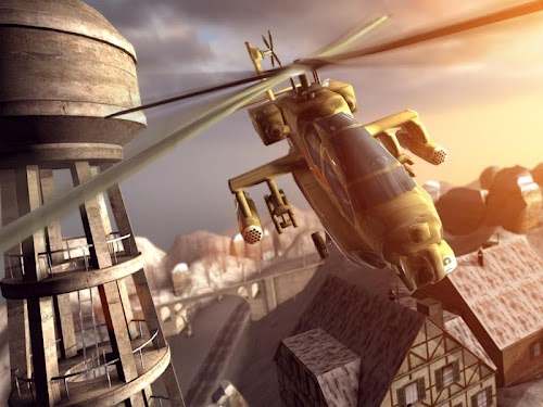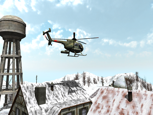 Here on our army base you'll find a ready for combat and rescue mission helicopter known as Hughes. You'll be flying solo missions to pick up supplies, drop off reinforcements and rescue stranded soldiers.