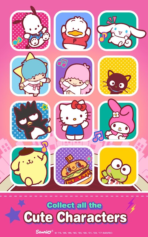 Play your own favorite songs to unlock Sanrio darlings such as Hello Kitty, My Melody, Cinnamoroll, Pompompurin, among many others!