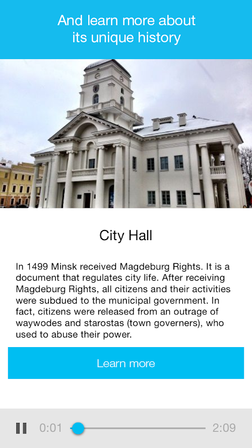 The audio guide will help tourists to learn more about the history, places, culture and the architecture of the Belarusian capital through the proven historical facts, opinions of the residents and the urban legends.
