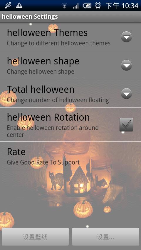 Pumpkin shape:Change Helloween color of Helloween Live Wallpaper,three color you can choose