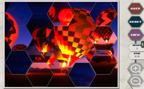 Get Up, Up, and Away in this brand new FREE version of HexSaw - Hot Air! Everyone loves the bright colors and wonderful scenery around hot air ballooning and we've brought it all together with 5 pictures in four challenging puzzle sizes.