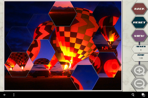 HexSaw's hexagon pieces put a new shape in an old puzzle and jigsaw puzzle enthusiasts will enjoy a new twist on an old favorite. Start with a jumble and swap pieces until the picture is revealed.