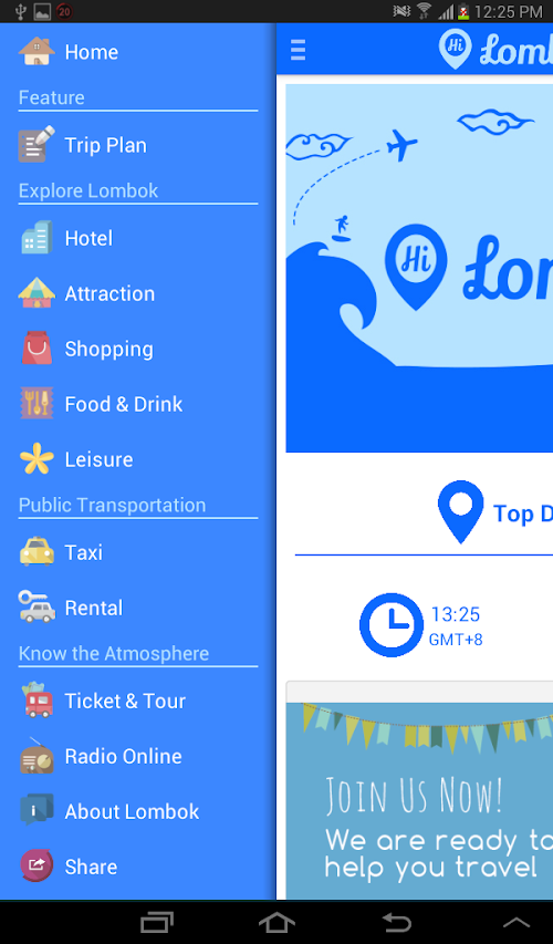 Lombok is one of the world's tourist destination famous for its unique culture and natural resources. Hi Lombok is an application which provides the most complete information about point of interest in Lombok. This application can be used by tourists to travel to Lombok. Hi Lombok help people to find restaurants, attraction place, hotels, shopping place, and other top destination which people often to visit. We also provide transportation info that easy to use which includes navigation information how to get the location from tourist' location.