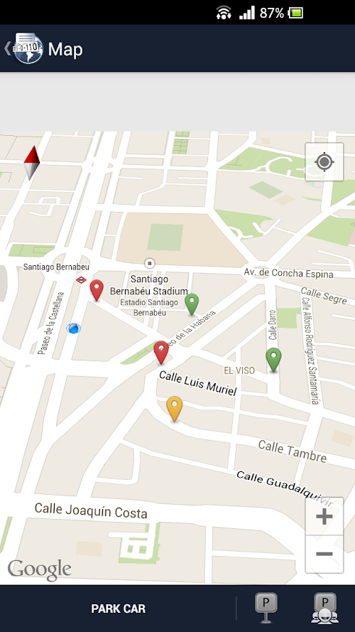 The parking module allows you to see where other cars are parked. You can see the time of parking, the ticket expiration time (if any) and the spots that have just been released!