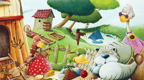 The little red hen finds some wheat and asks for help from the other farm animals: cat, duck and goose - but none of them want to help. Maybe you can help the little red hen find what she needs to plant and harvest the wheat.