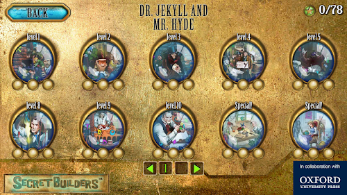 Based on the Oxford University Press edition of Dr. Jekyll and Mr. Hyde by Robert Louis Stevenson, this hidden object game features amazing art and challenging hidden object puzzles designed by award winning game producer SecretBuilders. Each brain-teasing level unfolds a scene from the book with beautiful illustrations and audio excerpts.