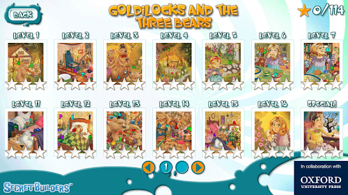 Based on the Oxford University Press edition of Goldilocks and the Three Bears, this hidden object puzzle game features stunning art and stimulating puzzles designed by award winning game producer SecretBuilders. Each brain-teasing level unfolds a scene from the book with beautiful illustrations.