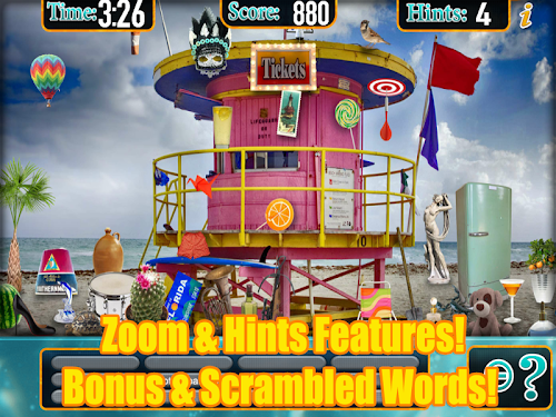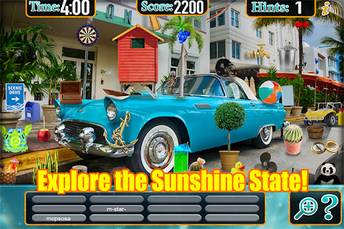 Hidden Object Florida Vacation Adventure is a beautifully designed finder game with numerous “Sunshine” state themed levels and fun items. Search and Find plenty of Florida beach landmarks, flamingos, alligators and more!