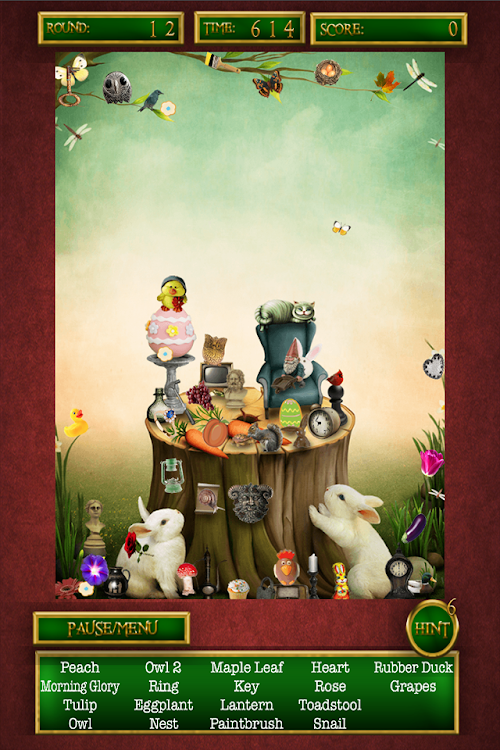 Hint button to aid you if you can't find all the items in the scene, and in each garden scene!