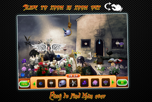Your goal is to find the series of hidden objects on each level. Use the Hint button and the zoom function to find items Quickly. When you complete the game press the More Games button to install more hidden object games for free.