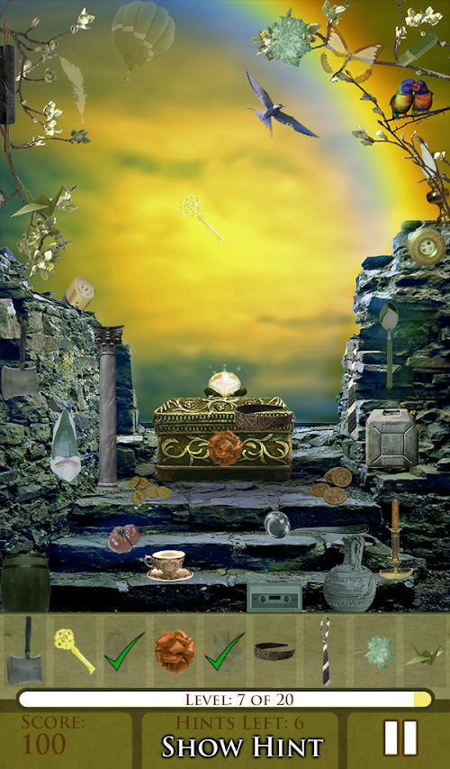 Experienced players can select a "Hard" hiding mode where items are partially blended into the scene. For beginners, a training mode and hints are included. We have you covered no matter your skill level!