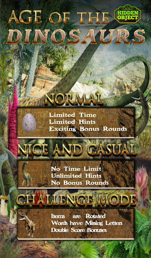 Look for hidden objects in three game modes and three difficulty modes! But hurry; an asteroid once again warns the end of the Age of the Dinosaurs!